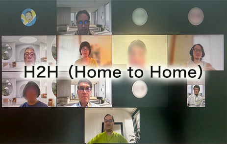 リモートで勤務している在宅社員は、相互の交流の機会が限られています。そこで有志による事務局メンバーが中心となって、隔週1回のオンライン会議『H2H』を開催しています。コーヒー片手に、全国の在宅勤務者それぞれの“ホーム”を結んでグループを構成し、話し合いを通じて情報交換をはかります。
