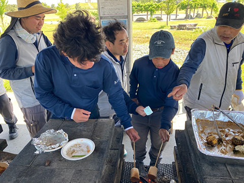 社長や他の役員も参加してBBQでお肉を焼いたり食事をしたり、