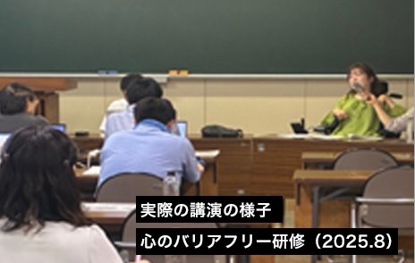 株式会社Act.での勤務を通して、障がいがありながらの就職・就労の経験、女性障がい者を取り巻く社会問題、心のバリアフリーに関してなど、幅広く講演を行っています。障がいのある人とない人の相互理解のきっかけをつくることを目標に大学生、自治体職員なども対象として活動を続けています。