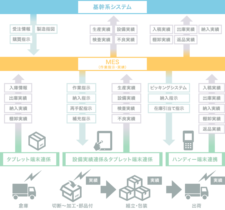 業務システムと制御システムを融合させ、情報の双方伝達を実現致します。