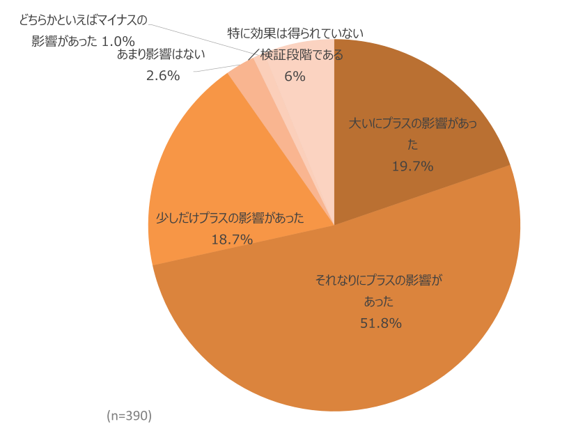 Q.現在の担当業務において生成AIを活用することによって得られている効果について、あなたの業務にどの程度の影響がありましたか
