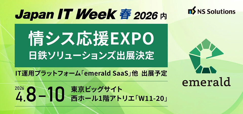 日鉄ソリューションズ株式会社(本社:東京都港区、代表取締役社長:玉置 和彦、以下「NSSOL」)は、2026年4月8日-10日に東京ビッグサイトで開催される、RX Japan合同会社主催のイベント「Japan IT Week春2026」に出展します。本イベントはシステム開発・運用、セキュリティ、人材不足対策など、幅広いIT領域の最新トレンドが分かる大規模業種展であり、今年は1,100社以上の出展、60,000名以上の来場が見込まれています。NSSOLは、西ホール1階のアトリエエリアで開催される情報システム部門EXPO内「W11-20」へ出展予定です。
