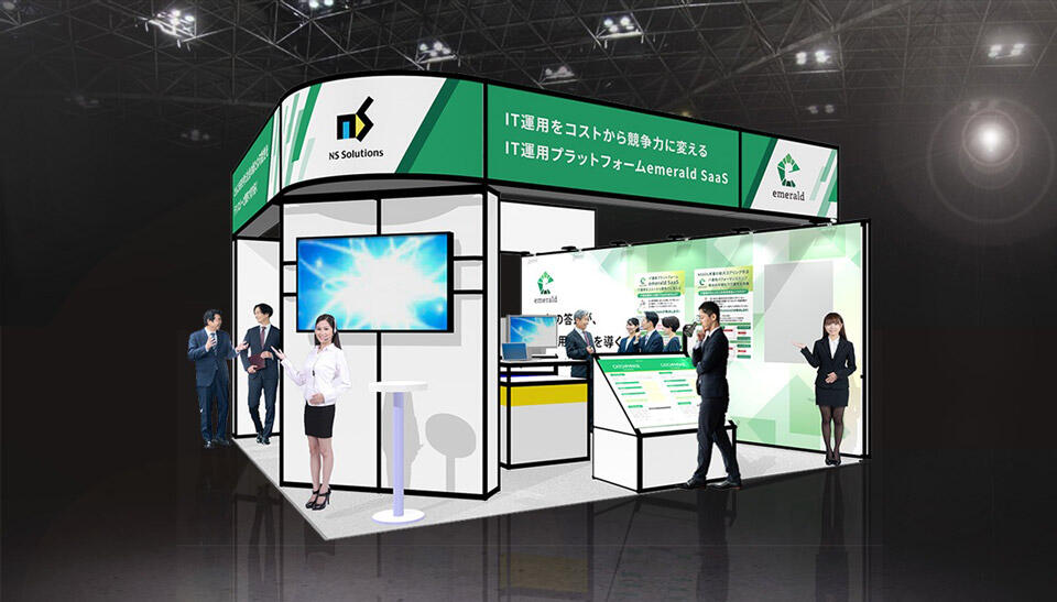 会期中は、IT運用業務の属人化や可視化に課題を抱えるお客様に向けて、NSSOLの最新のIT運用サービスや取組みを紹介します。NSSOLが新日本製鐵時代から培ってきた55年のIT運用ノウハウから生まれたIT運用プラットフォーム「emerald SaaS(エメラルド・サース)」※1や、IT運用実態を可視化し具体的な改善施策を見出すための「IT運用パフォーマンススコア」を初出展予定です。特に、IT運用パフォーマンススコア(特許出願中)はNSSOLが考案した先進的なスコアリング手法であり、IT運用環境の改善に悩まれるお客様の強力な一助となります。既存のIT運用体制を活用し、よりサステナブルなIT運用環境を整えるためのNSSOLの運用ノウハウをぜひ展示会場でご覧ください。