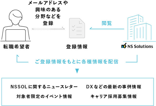 ご自身のメールアドレスなどをご登録いただくことで、当社より各種情報を配信させていただきます。