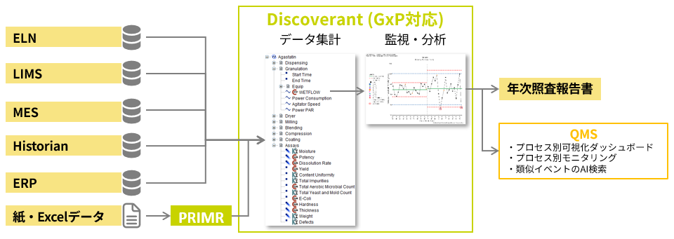 - 研究開発から製造工程に至る情報を有機的に結びつけ、それらの情報を解析・活用可能
